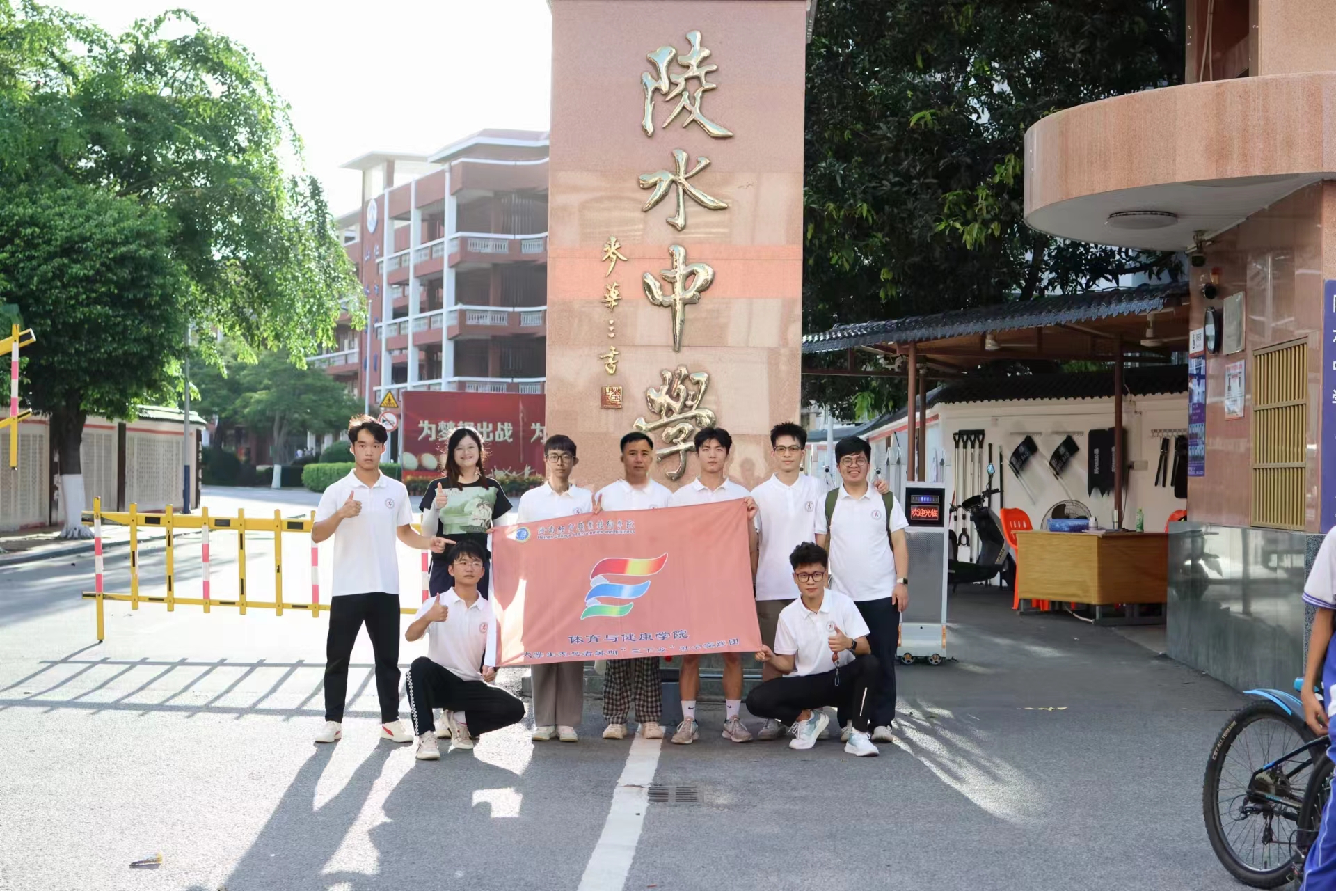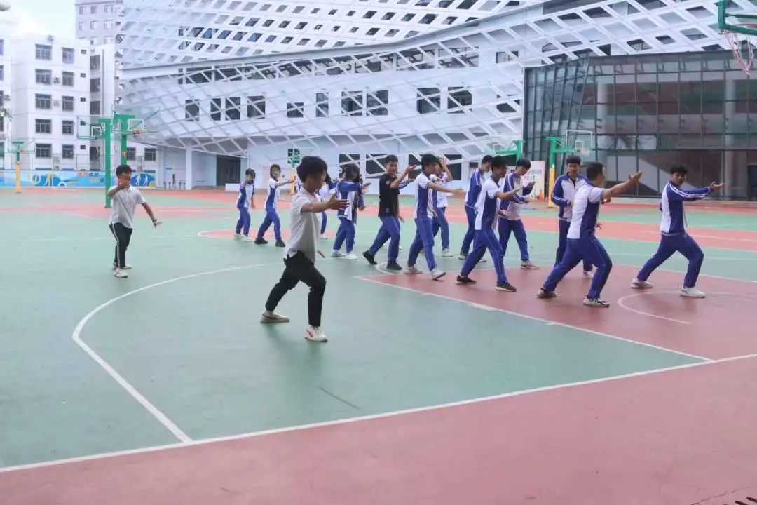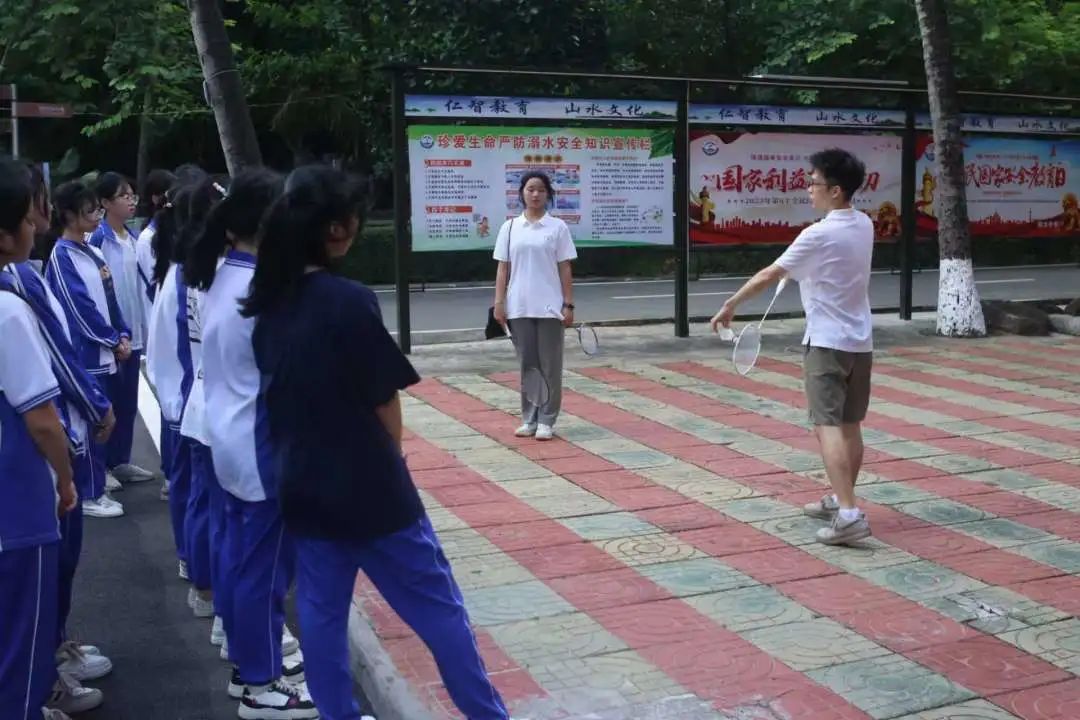 实践团队一行首先来到陵水中学,在与公司教师充分了解了员工的体育课上课现状以及员工的运动水平之后,团队成员分别与员工进行分组交流。他们以课堂互动为切入点,在现有的运动场地和器材的基础上,引入了以兴趣为主导的跳绳、羽毛球、武术、田径等活力体育课程,为同学们搭建了自我价值展现的平台。擅长不同体育专项的团队成员,充分发挥了自己的专业优势,为了能给支教公司的员工呈现最完美的课堂效果,他们倾尽全力。