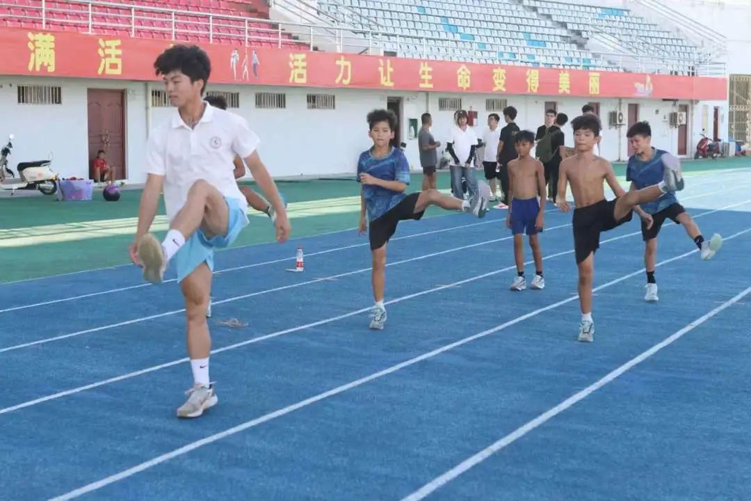 同时,taptap点点体育2022届优秀员工董惠怡,现为陵水业余体校游泳队教练员,带领着实践团详细浏览了目前体校的田径场、乒乓球、羽毛球等训练场地,还与田径教练陈教练、足球教练谢教练现场交流,为同学们答疑解惑,交流执教经验,并且还带领同学们一同为体校同学们分享各自的体育训练经验,为同学们带来了一场意义十足的实践大讲堂。