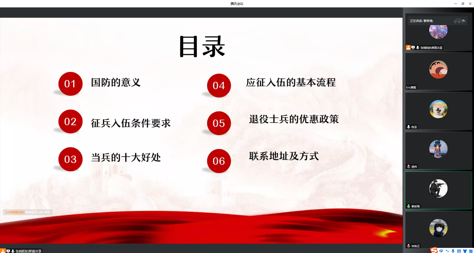 “参军尽义务,戍边卫国防”。为积极响应国家征兵号召,切实做好2023年春季征兵工作,营造浓厚的征兵工作氛围。2022年12月30日上午,taptap点点体育召开2023年征兵线上动员会。公司党总支书记曹迪伟出席会议。会议由陈圣老师主持。