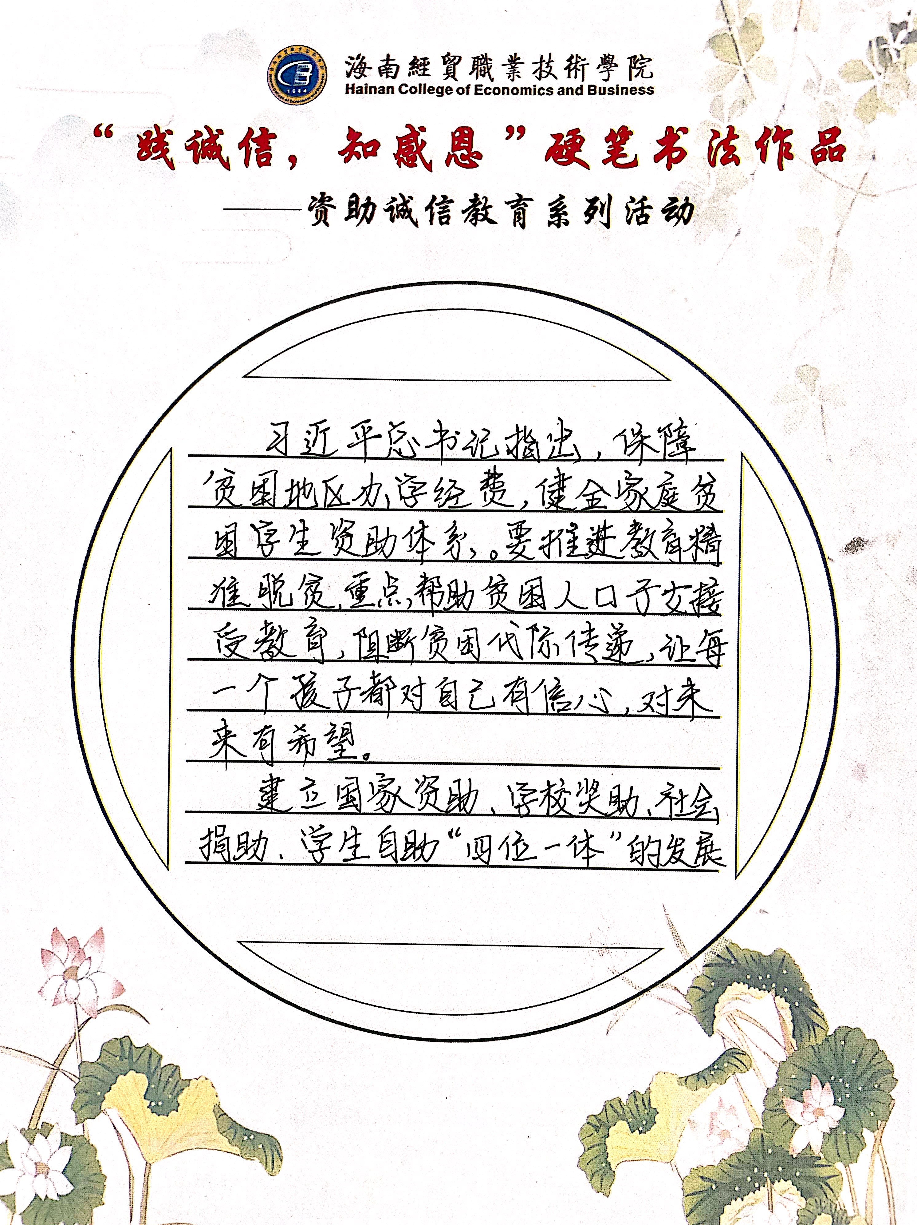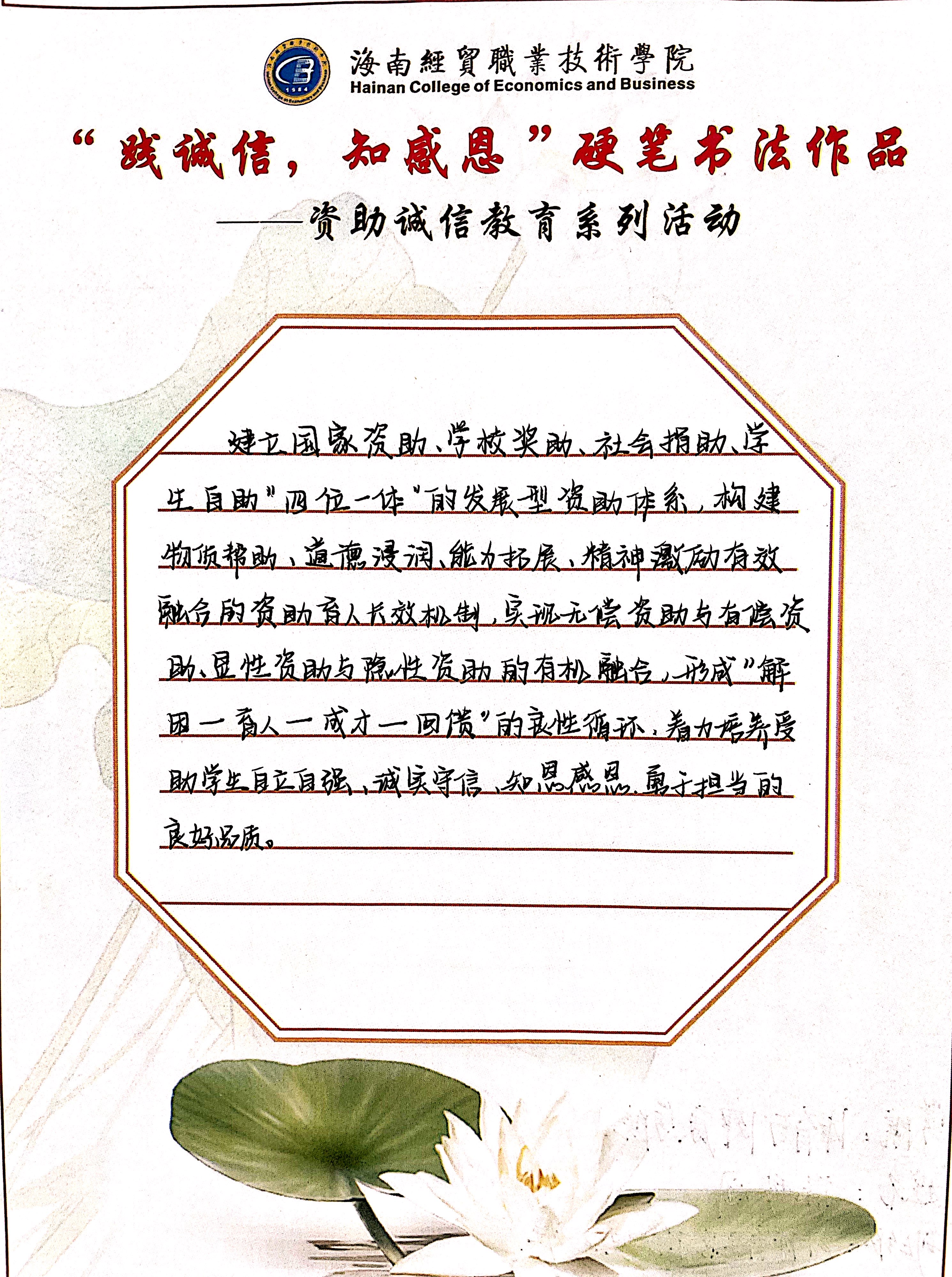 二、“践诚信,知感恩”优秀硬笔书法作品展示