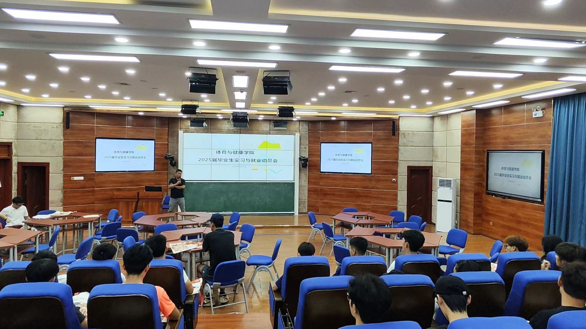 2024年6月6日,taptap点点体育召开“梦想启航 不负韶华”2022级员工实习动员大会。taptap点点体育副经理黄闻寰、辅导员、班主任和2022级全体员工参加大会。