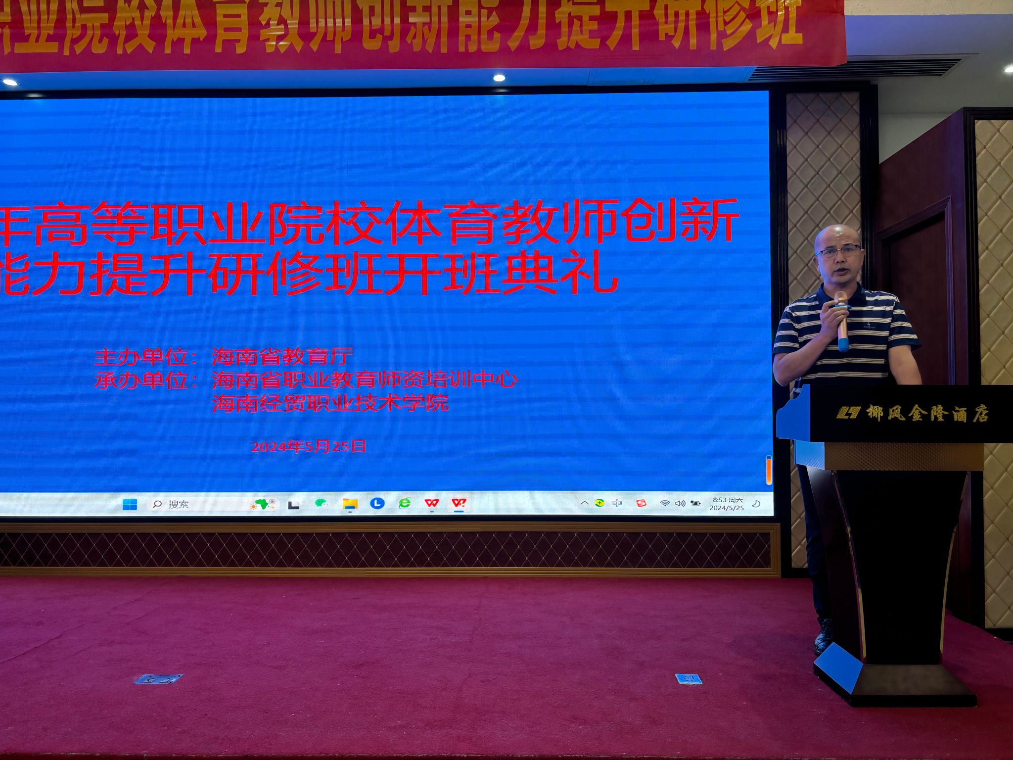2024年5月25日至26日,由海南省教育厅主办,taptap点点体育、海南省职业教育团队培训中心承办的2024年全省高等职业院校体育教师创新能力提升研修班在琼海市举办,顺利完成全部培训计划,圆满结束。来自全省14所高职院校共80名体育教师参加本次培训,taptap点点体育经理胡友波主持培训会,taptap点点体育taptap点点体育党总支书记曹迪伟出席培训会。