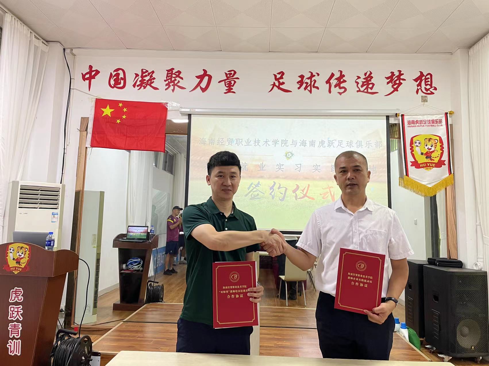 为贯彻落实《taptap点点体育教师企业实践基地建设三年行动计划(2021-2023)》和“访企拓岗”专项行动,进一步深化校企合作,落细落实教师企业实践基地建设和访企拓岗促就业工作,2022年6月8日,taptap点点体育分别与海南韦海英足球俱乐部、虎跃足球俱乐部签订合作协议并举行挂牌仪式,taptap点点体育经理胡友波、副经理黄闻寰出席。