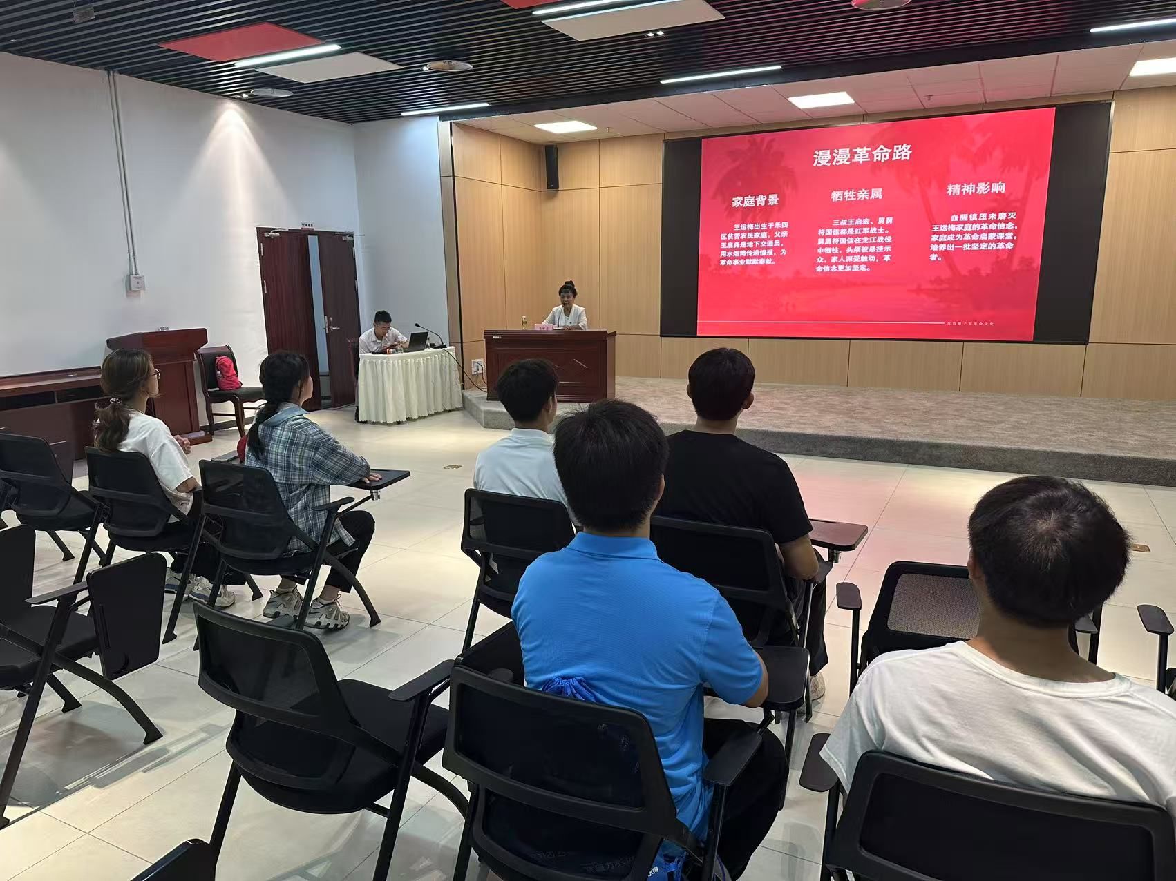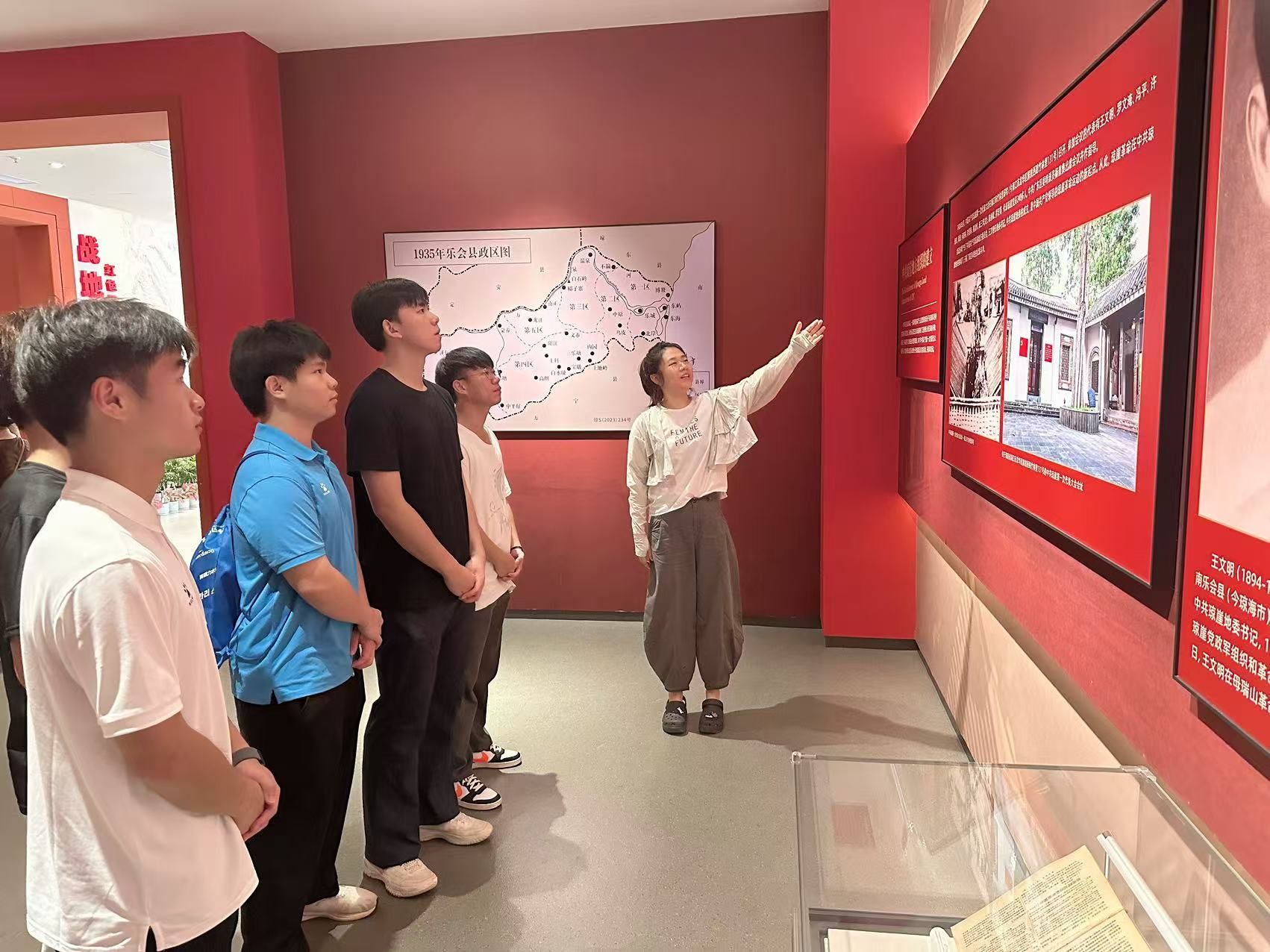 7月1日,实践团首站抵达红色娘子军纪念园。纪念馆内,一件件珍贵的历史文物、一幅幅生动的斗争画卷,将那段波澜壮阔的峥嵘岁月重现眼前。同学们被娘子军战士“巾帼不让须眉”的坚定信念、不屈斗志和牺牲精神深深震撼。“她们在如此艰难的环境下为理想奋斗,作为新时代青年,我们更应珍惜当下,坚定理想信念,将个人奋斗融入时代洪流。” 员工代表傅筱琪在参观后动情地表示。员工党支部党员教师张晓阳在现场勉励大家,要从红色娘子军精神中汲取信仰的力量,传承革命先辈的红色基因,担当时代赋予的使命。