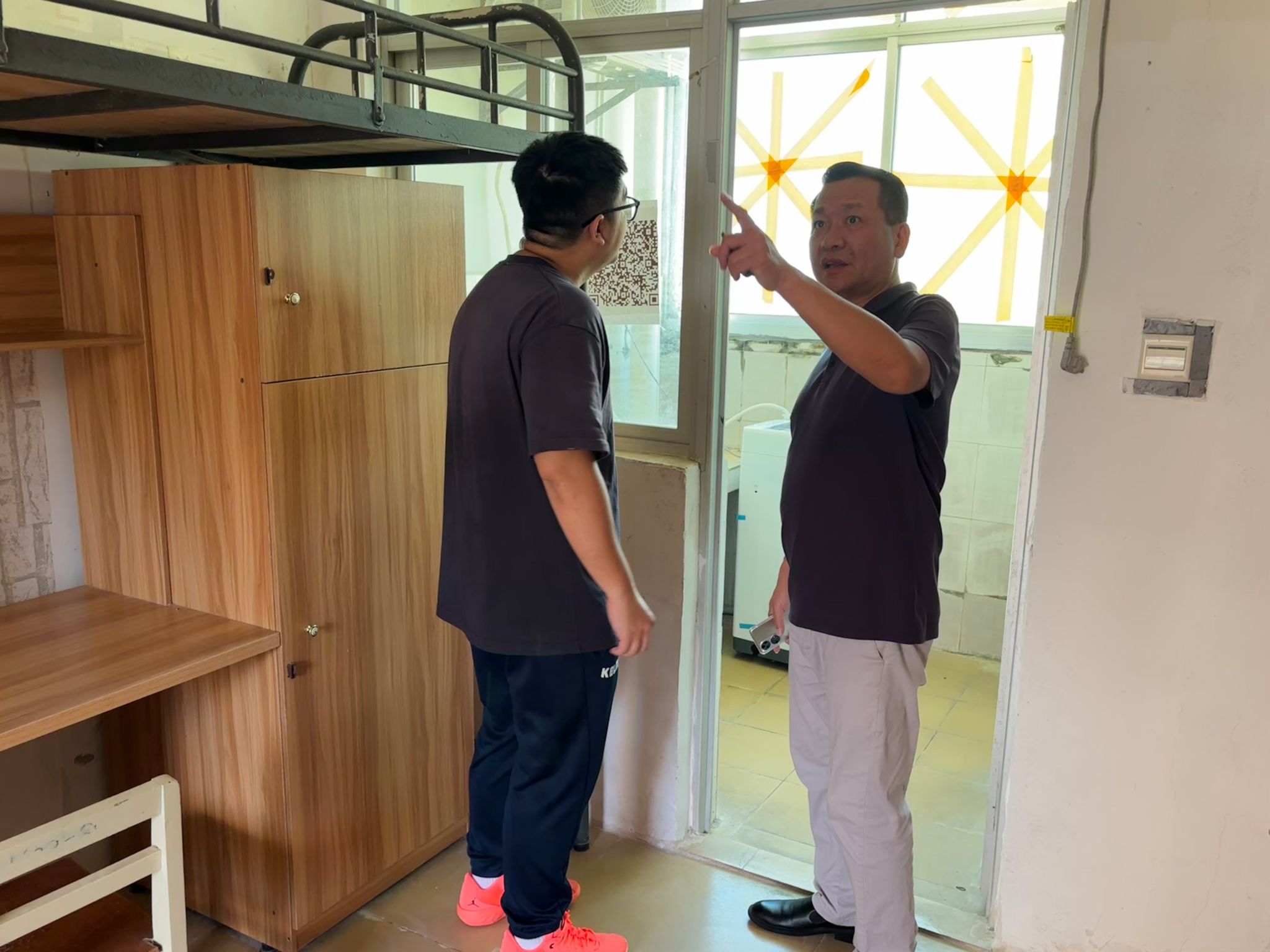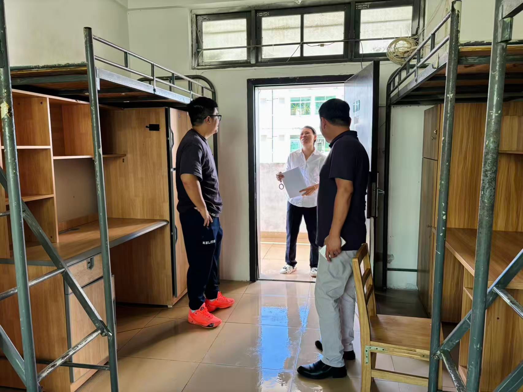 为切实做好新学期员工宿舍安全卫生管理工作,排查各类安全隐患,以安全、整洁、有序的住宿环境迎接2025级新生的到来,2025年9月12日,taptap点点体育党总支书记曹迪伟一行深入员工宿舍开展安全卫生检查工作。
