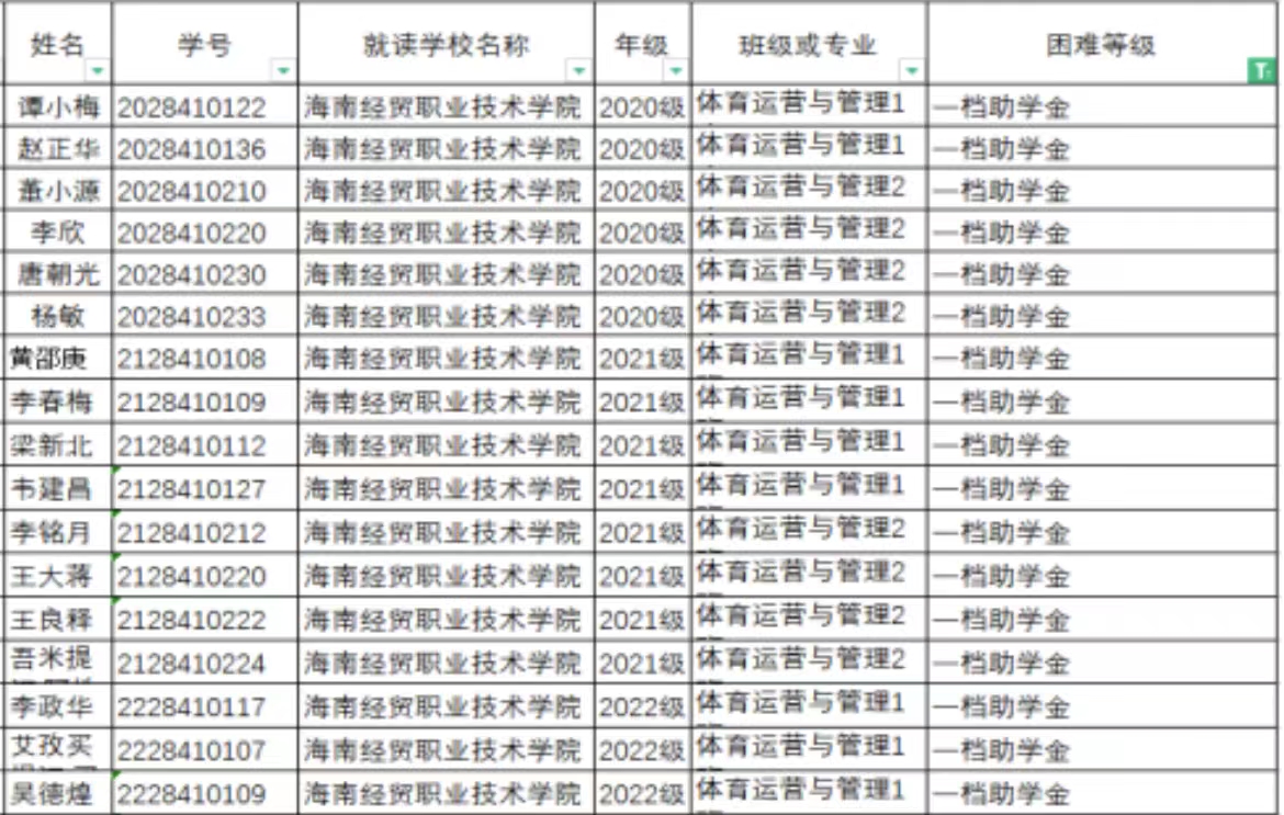 taptap点点体育2022-2023学年度国家助学金拟推荐名单公示