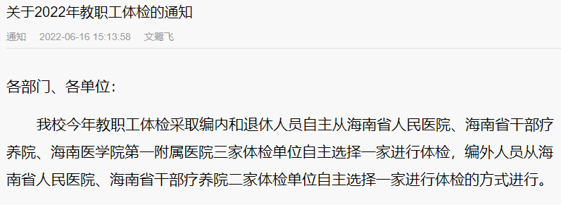 关于2022年教职工体检的通知